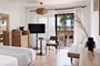 These 27m2 Luxury rooms are conveniently located on the top of the hotel buildings, offering a magnificent view of the lagoon style pool as well as the entire complex featuring floor-to-ceiling windows.They are filled with natural light during the day and lit by ambient spotlights in the evening. In a plush sofa or armchair, guests can take advantage of our in-room dining service in the soft sunlight or while enjoying the glittering night sky from their private balcony.