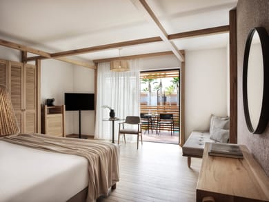 The Premium Double Room with Steam Bath facilities,is conveniently located on the top of the hotel buildings feature a Queen Size bed and floor-to-ceiling windows revealing a magnificent view of the lagoon-style pool from their private balcony. Available in either a double bed or twin beds, with a comfortable sitting area, Premium Pool view rooms can comfortably accommodate up to 3 people.