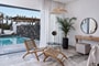 Just a few steps away from the main building of Stella Island, guests can swim in their own private swimming pool and sunbathe on the confortable wooden sun loungers. With their private pool and outdoor spacious lounge hidden away, these villas are perfect for intimate evenings spent outdoors. The beautiful luxurious villas have floor-to-ceiling windows, a Queen size bed, a buthtub with jacuzzi and a walk-in-shower. Marble and wood are the main design materials giving the sense of simplicity and cleanness.